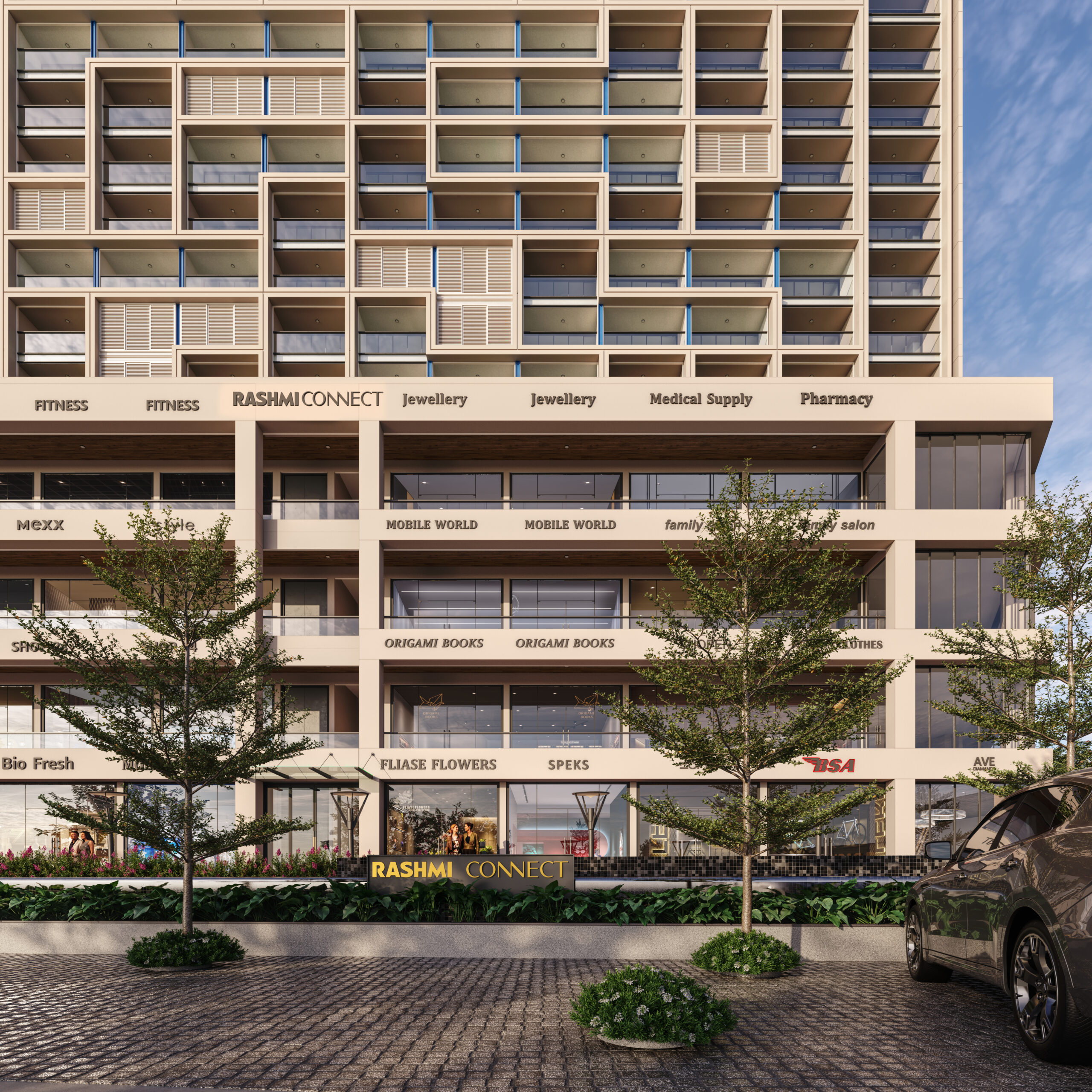 Our buildings feature a modern, elegant facade crafted with premium materials, ensuring durability and low maintenance. The contemporary design creates a striking first impression while reflecting Rashmi’s commitment to superior construction.