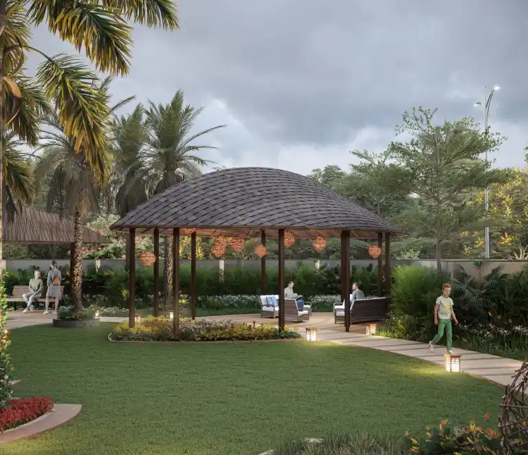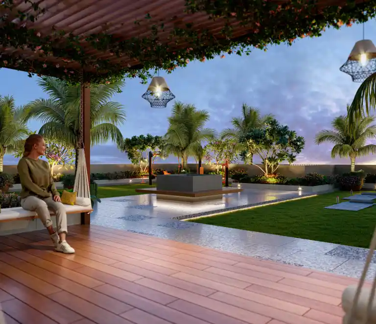 An elegantly landscaped event lawn offering ample space for grand celebrations and special occasions. A perfect blend of openness, comfort, and style.